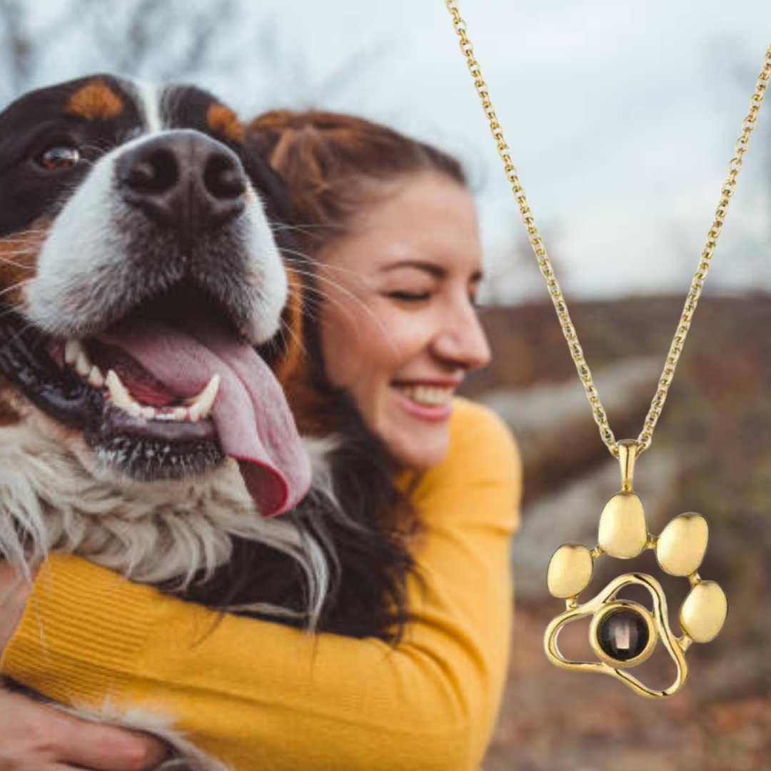 Cuando acercas el collar o el anillo a la luz (como la linterna del móvil) o lo miras de cerca, se proyecta la imagen personalizada de tu mascota en miniatura, creando un recuerdo íntimo y único.